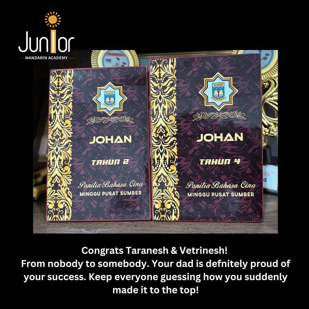 When they found Junior Mandarin Academy, they were surprised on the unique system taught by Sifu Kairesh. Within months, they started scoring A all the way in Mandarin until today.